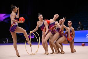 La clasificación general permitió al #TeamESP entrenado por Alejandra Quereda subirse a los más alto del pódium con una puntuación de 53.800 puntos, tras sumar 26.100 en el ejercicio de 5 cintas y 27.700 en el ejercicio de aros y pelotas.